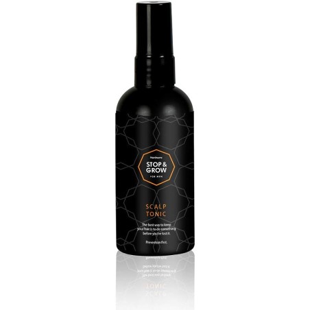 Stop&Grow Scalp Tonic for Men es un tónico para el cuero cabelludo para hombres que está formulado para detener la caída del cabello y a estimular el crecimiento de nuevo cabello. Por sus ingredientes de origen natural, no reseca ni irrita el cuero cabelludo. Se puede utilizar a diario para obtener los mejores resultados.